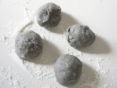 ② 別の容器に▽Aの材料を入れて混ぜ、少しずつ加えて生地を練り、丸くまとめる。