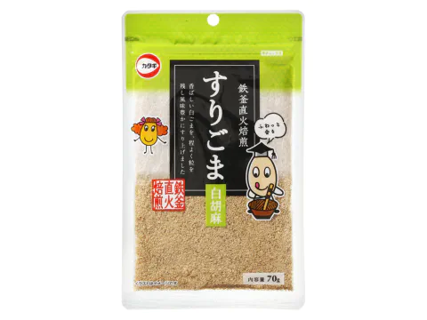 粗ずり仕上げのすりごまです。歯応えのしっかりした粒を風味よくすり上げた、たっぷりサイズのお値打ち品です。